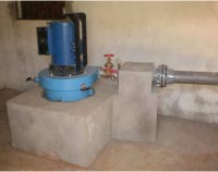 Le groupe turbine Pelton – Alternateur peut fournir une énergie électrique d’environ 13 kW sous une tension triphasée de 400 Volts et/ou 3 x une tension monophasée de 230 Volts. SEM a fait le choix de disposer d’une tension triphasée pour alimenter de petites machines (décortiqueuses, machines de menuiserie, etc.), les moteurs triphasés étant beaucoup plus robustes que les monophasés (pas de condensateur de démarrage). En avril 2011, une liaison provisoire a été installée entre la centrale et le village. Connectés par un câble sur une distance de 600 mètres, les poteaux installés dans les rues du village ont été équipés d’une ampoule. Enfin en septembre 2011, la microcentrale hydraulique a été connectée de manière définitive au village.